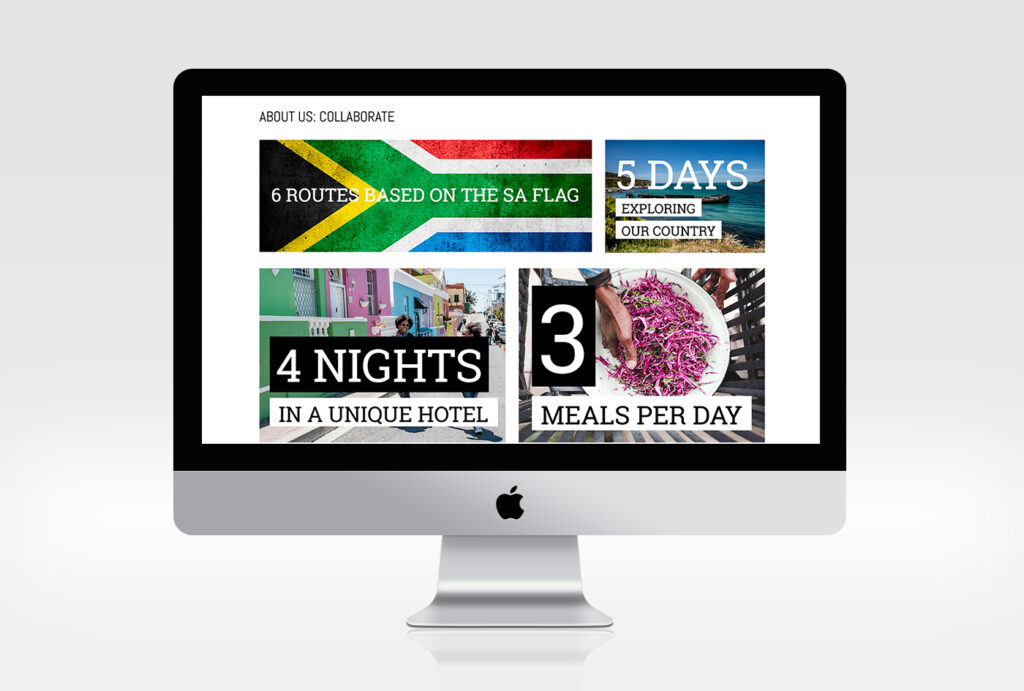 Soul Traveller A local travelling agency specialising in South African tours approached us to work on their website and other design collateral, including email campaigns, business cards, digital tour pamphlets, pull-up banners and letterheads. Their fun and vibrant brand identity is a reflection of the rainbow colours in the South African flag, as well as other bright colours to support their different tour and route options available. Year 2017 Client Soul Traveller Industry Travel Services Website Design & Development, Digital Banners, Printing of Business Cards, Digital Newsletters, Digital Emailers, Digital Invitations, Letterhead Design, Pull-up Banners, Signage